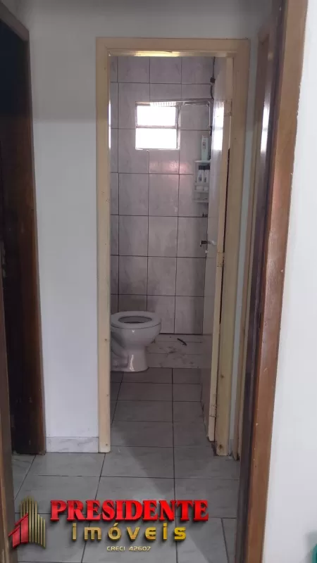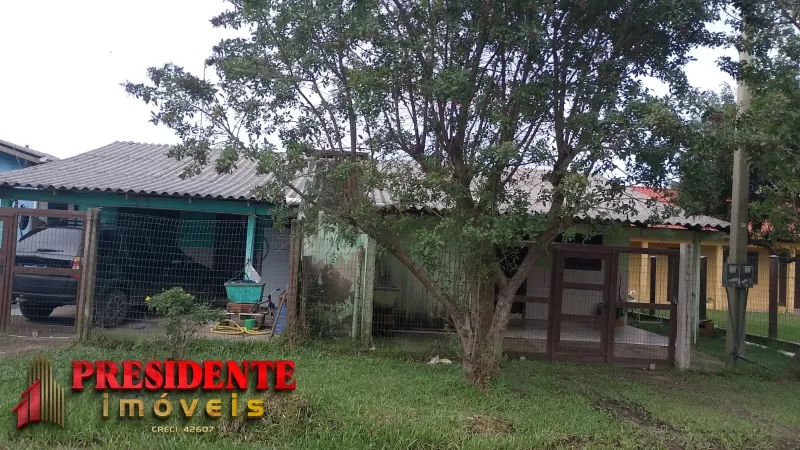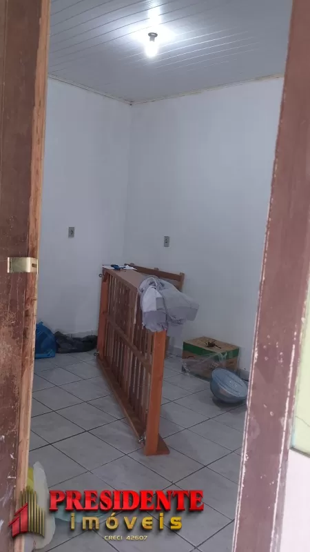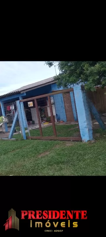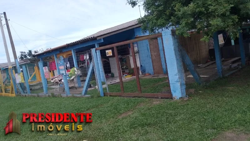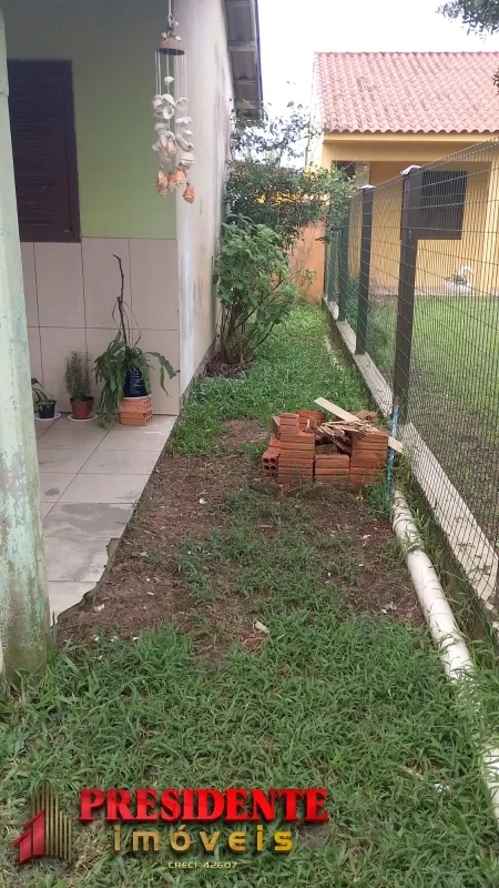 Três geminado com dois dormitórios, sala, cozinha, banheiro social, pátio frente, área de serviço, todos com água e luz individual